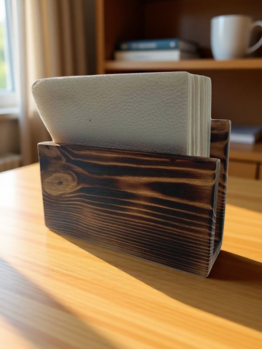 Эта деревянная салфетница с покрытием из льняного масла сочетает в себе прочность и естественную красоту. Естественный цвет «обожённое дерево» создаёт атмосферу уюта, гармонируя с любым интерьером. Покрытие защищает поверхность от влаги и сохраняет товар в идеальном состоянии даже при частом использовании.